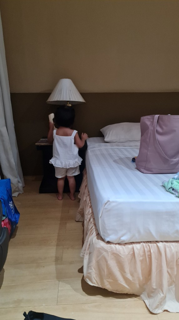 In Cebu City, we checked in into a cheap hotel for the night. Good thing they allowed early check in. It was also Sprout’s first time seeing a lamp shade and a telephone – hahaha! We ordered a bunch of food via FoodPanda for dinner – laksa, if I remember correctly – which was super yummy.